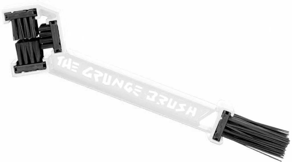 La chaîne peut être nettoyée en quelques secondes avec la brosse grunge: vaporisez la brosse avec un nettoyant (par exemple Finish Line EcoTech 2), laissez la chaîne passer à travers la brosse grunge, c’est fait.